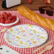 Celebrate the arrival of a little one with this charming floral pattern paper plate, designed to complement a floral or spring-themed baby shower. Featuring a soft pastel daisy pattern in peach, lavender, and golden yellow, this design adds a whimsical and vintage-inspired touch.