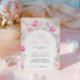 Soft pastel pink floral arch baby shower invitation.