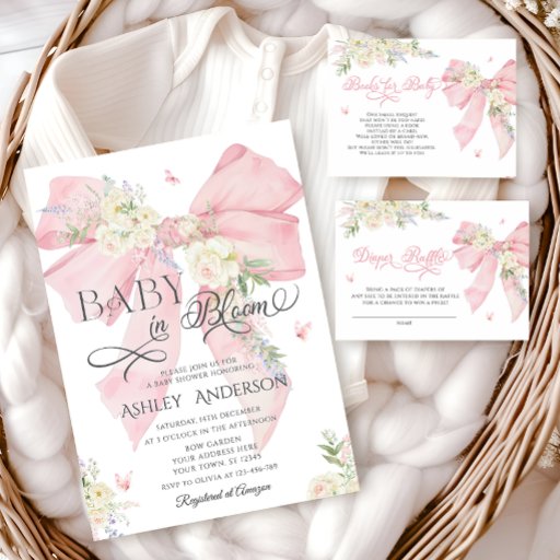 The item is a vision of elegance, femininity, and whimsical charm. This enchanting design features delicate watercolor florals in soft blush and pastel hues, symbolising the beauty of new life. A dainty pink bow adds a touch of grace and sweetness, while fluttering butterflies bring a sense of lightness, joy, and transformation, making it perfect for celebrating a little one on the way. The romantic calligraphy combined with a classic serif font creates a timeless and dreamy aesthetic. Whether you're hosting a garden-themed baby shower, an afternoon tea, or a floral-inspired celebration, this invitation sets the tone for a magical and heartwarming gathering filled with love, beauty, and new beginnings. Matching items available.