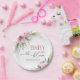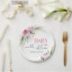 Celebrate your baby shower with these Baby In Bloom paper plates, featuring pink florals, greenery, and elegant gold accents. Personalize the text to add a custom touch to your event. Perfect for garden-themed showers, brunches, or chic celebrations. A beautiful design with effortless cleanup.