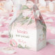Elegant Floral Baby in Bloom Small Gable Favour Boxes for a girl baby shower with pink flowers and greenery. You can choose from 3 sizes of these gable favour boxes. Easily Personalise all the text and if you don't want the crown there, just leave it blank in the text box, it's just a text - Kate Eden Art