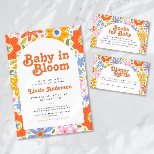 Baby in Bloom Retro Groovy Wildflowers Baby Shower Invitation
