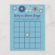 Have some fun at baby showers with these fun bingo cards. The features retro modern floral graphics in shades of blue and cream set against a light blue background making them perfect for showers for baby boys. The front of the card has a blank bingo square, the title "Baby in Bloom Bingo" and instructions for your guests to fill in gifts they think the mum-to-be will receive. The reverse side has coordinated floral graphics and is ready to be personalised with a tagline, the title of the party and the date.
