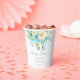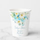 Baby in bloom spring summer flowers baby shower personalised tableware template paper cups, pastel blue and white buttercup daisies flowers for spring summer garden themed baby shower personalised party cups