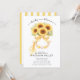 Celebrate your little sunshine with this beautiful “Baby in Bloom” baby shower invitation featuring a bouquet of bright sunflowers, a soft yellow bow, and a charming rattle detail. This warm and cheerful design blends rustic floral charm with an elegant, modern layout, making it perfect for a sunflower baby shower, summer celebration, or gender-neutral event. The golden tones and delicate watercolor style create a joyful and inviting look your guests will love. Easily personalize with your event details to create a memorable and stylish invitation.