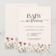 Celebrate the upcoming arrival of your little one with this gorgeous Wildflower Baby in Bloom Baby Shower Invitation. This simple invitation captures the essence of nature's charm with beautiful watercolor flowers in soft, pastel hues with an off-white background. The elegant script calligraphy in blush pink, adds a touch of sophistication, perfectly complementing the boho chic theme. This wildflower baby shower invitation is a gender neutral option suitable for a boy invite or girl invite.