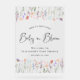 Elegant clear acrylic gender-neutral baby shower welcome sign featuring watercolors of delicate wildflowers and "Baby in Bloom" in a stylish contemporary script. Personalise with the name of the mummy-to-be and shower date in simple typography.