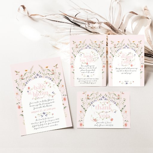 Baby in Bloom Wildflower Girl Pink Baby Shower Invitation