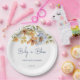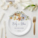 Baby in bloom meadow colourful dusty blue flowers baby shower wildflowers printed paper plates template. Watercolor wildflowers mixed colours dusty blue for a garden flowers themed baby shower personalised tableware