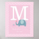 Cute initial monogram nursery poster, featuring your baby's name and the year that they arrived with sweet polka dot parent and baby elephants. A lovely keepsake to treasure!