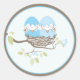 Adorable Twin Birds in Nest favour sticker. Matching invitations, thank you cards and postage stamp.