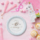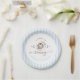 Adorable paper plates designed with soft blue vertical stripes and artistic illustrated details. A stylish and coordinated addition to your baby shower table setting.