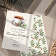 This "Baby is Brewing" coffee-themed baby shower invitation features a watercolor design of a steaming cup of coffee, symbolising the excitement of a new arrival. The soft brown and cream hues evoke a cosy café vibe. The back of the card is decorated with a subtle coffee plant pattern, showcasing leaves and beans in earthy green and brown tones, adding an elegant touch. It’s the perfect blend of whimsical and sophisticated for a coffee-loving mama-to-be!