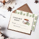 The "Baby is Brewing" coffee-themed Guess How Many game enclosure card features a steaming cup of coffee in warm brown and cream tones on the front. The back is decorated with a delicate coffee plant pattern, showcasing leaves and beans in earthy hues. This playful and interactive card adds a fun touch to the baby shower while perfectly complementing the cosy, coffee-inspired theme for a coffee-loving mama-to-be.