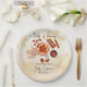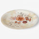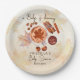 A Baby is brewing fall autumn baby shower customised monogrammed paper plates template, watercolor hot chocolate coffee cinnamon spices cookies maple leaves, brown background for autumn fall themed baby shower personalised tableware custom paper plates baby fall coffee shower party supplies .
