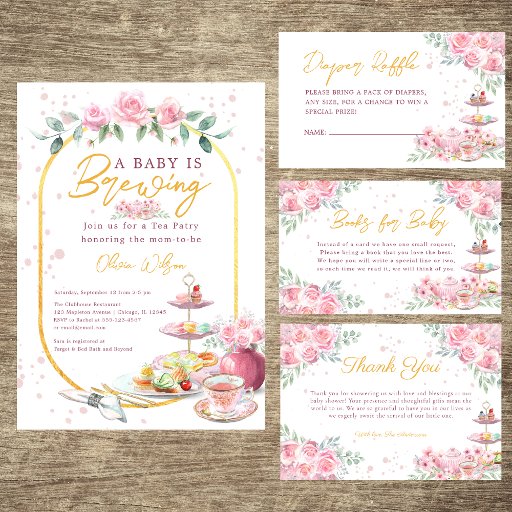 Baby is Brewing Pink Floral Tea Party Baby Shower Invitation