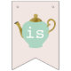 Fun bunting flag decoration for your tea party theme baby shower. The texts on the flag says "A BABY is BREWING" There is floral and teapot illustrations as well. Great for a girl's baby shower.