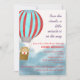 Baby Shower invitation features a cute bear in a hot air balloon flying above the clouds describing the baby is coming.