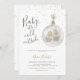“Baby it’s cold outside” Celebrate the mum-to-be with this gender neutral winter baby shower invitation featuring a minimalist watercolor illustration of a glass ornament with baby shoes inside and tiny snowflakes.