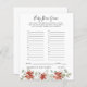 This baby shower game card features beautiful soft watercolor winter florals in shades of red and white that are balanced with lush greenery, making it a warm and airy palette. Change background colour or add graphics to match your shower theme. Need coordinating graphics please contact me for a custom order. Of course it's not required that you play games at the baby shower, but consider this: You're going to have an all-ages group, and most of the guests have probably never met one another before the party. Mixing in a few of these classic baby shower games is a perfect way to break the ice. These professionally designed cards are quickly customisable.