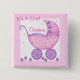 This badge pin will make a great announcement for your baby girl. This pin features a pink baby buggy with the words "It's A girl" with the baby's name. This makes a good shower favour or great to hand out instead of cigars! The pink buggy is accented with lavender purple colours and is on a white background surrounded by a pink border. This pin coordinates with invitations, stamps and everything you need for your baby as well as for a baby shower. The buggy is stylish, cute and whimsy original art by Phyllis Dobbs. Fully customisable.