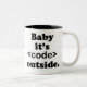 Says "Baby It's Code Outside" a pun on the famous song and a reference to computer coding or programmer. Suggested as a gift for people involved or interested in software or developement.