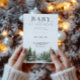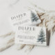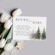 This design features a soft watercolor woodland forest background with elegant typography, perfect for a rustic, nature, or woodland-themed baby shower.