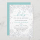Brrr! Frosty chic invitations for winter baby showers feature a background of pale grey snowflake silhouettes with "baby it's cold outside" in aqua and grey lettering. Personalise with your gender neutral baby shower details beneath using the template fields. Cards reverse to solid light turquoise.