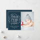Whimsical and rustic Christmas photo flat card for your family and friends. It features a rustic modern calligraphy quote "Baby It's Cold Outside" with snow accents and blue background. Personalise by adding a photo, name, year and other details. This hand-lettered Christmas flat card is available in other cardstock.