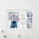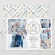 Showcase the year of your beautiful family in this pretty design that features space for 3 small photos and 1 large photo. A fun and playful design features "Baby it's cold outside" in a circle that reminds us of the very best things about the winter season: hot chocolate, snowmen, snuggling! In a cool teal blue and grey colour scheme, this design will look equally stunning with colour or black and white photos. Coordinating text pattern on the back adds a wonderful finished look to your greetings.