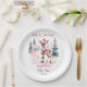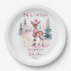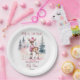 Baby it's cold outside girl baby deer baby shower tableware personalised template plates for winter themed baby shower. Cute baby deer wearing pink winter hat and scarf pink trees snowy background girls baby shower template plates