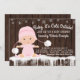 Girls baby it's cold outside baby shower invitation with adorable baby girl wearing a cute pink snow hat outfit on a rustic wood and snow snowflake background. These cute pink snowflake baby shower invitations are easily customised for your event by simply adding your details.