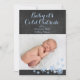 Light blue snowflakes decorate baby's photo on a chalkboard background, on this holiday card.