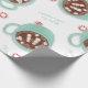 Christmas wrapping paper with snowmen made from marshmallows in a cup of hot chocolate. Vintage mint mixed with traditional Christmas reds and whites create a unique colour pallet. The text reads "Baby it's cold outside!" which gives it a fun twist.
