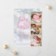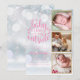 A stylish 3 photo collage holiday birth announcement card for you to personalise with your special 3 photos in gold frames, holiday message, names, and birth stats. The reverse features falling snowflakes. Designed by Thisisnotme©