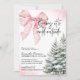 Celebrate the magic of winter with this charming Pink Bow Winter Baby Shower invitation! Featuring snowy pine trees, delicate snowflakes, and a soft pink bow accent, this design perfectly blends cosy woodland charm with a sweet, feminine touch. Ideal for a baby shower during the holiday or winter season, this editable template sets the stage for a warm and joyful gathering.