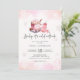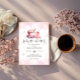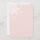 Cute pink girl baby shower winter invitation with snowflakes, hot cocoa, baby bottle and pacifier.