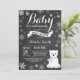 Baby Its Cold Outside Polar Bear Winter Baby Shower Invitation. Boy or Girl Baby Shower Invitation. Winter Holiday Baby Shower Invite. White Snowflakes. Snowman and Chalkboard Background. For further customisation, please click the "Customise it" button and use our design tool to modify this template.