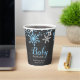 These cute winter boy baby shower paper cups feature blue and white snowflakes with a curly script font. Perfect for adding a custom touch to a winter baby shower.