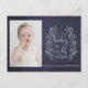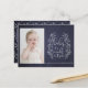 Winter modern photo family greeting postcard with a trendy "Baby It's Cold Outside" hand lettering calligraphy script and a snowflakes pattern on the reverse over a dark midnight navy blue chalkboard background.+++++++++++ Personalise it with your photo, signature and address!