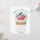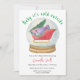 Baby Shower invitation featuring an adorable watercolor Santa's sleigh with gifts in a glass ball. Winter Baby Shower. Christmas tree, bag with gifts from Santa Claus. Santa baby shower theme.