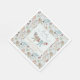 These gender neutral winter Baby Shower paper napkins feature cute hand-drawn illustrations of Christmas pajama bodysuits and plush animals on a clothesline and customisable name and event. Elegant soft mint blue background.