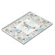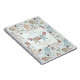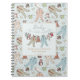 This gender neutral "Baby it's cold outside" Christmas or Winter baby shower notebook features a hand-drawn pattern of Christmas baby bodysuits, adorable winter stuffed animals (penguin, reindeer, teddy bear) and bibs hanging on a clothes line with customisable names, event and event date. The background features a pattern of baby bodysuits, stuffed animals, bibs, bottles, pacifiers and xmas gifts, all against a white background with scattered cute little stars, all against an elegant minty blue background.