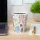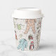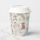 These gender neutral winter Baby Shower paper cups feature a cute pattern of hand-drawn illustrations of Christmas pajama bodysuits, plush animals, baby bottles, bibs, pacifiers, presents and tiny yellow stars. Elegant ivory background.