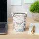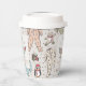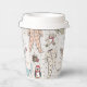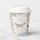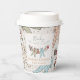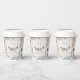 These gender neutral winter or holiday season Baby Shower paper cups feature cute pattern of hand-drawn illustrations of Christmas pajama bodysuits, cute plush animals, baby bottles, pacifiers, presents and tiny yellow stars. Customisable name and event. Elegant ivory background.
