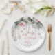 Baby it's cold outside winter baby shower tableware personalised template paper plates watercolor pastel pink and grey pines blush pink roses rose gold snowflakes with crystals baby girl template party plates, for winter themed baby shower winter wonderland baby shower.