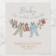 These gender neutral "Baby it's cold outside" winter Baby Shower wine labels feature a cute hand-drawn pattern of Christmas pajama bodysuits, plush animals and bibs hanging on a clothesline. Elegant ivory background, Customisable name, event and date.