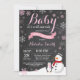 Baby Its Cold Outside Winter Girl Baby Shower Invitation. Girl Baby Shower Invitation. Winter Holiday Baby Shower Invite. Pink and White Snowflakes. Snowman and Chalkboard Background. For further customisation, please click the "Customise it" button and use our design tool to modify this template.