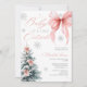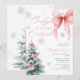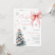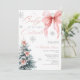 Celebrate a winter wonderland baby shower with this Baby It’s Cold Outside invitation featuring a pink coquette bow and snow-dusted Christmas tree. The soft blush tones, silver glitter snowflakes, and modern calligraphy make it a perfect choice for a festive winter gathering. Ideal for girl baby showers