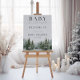 Thoughtfully designed to coordinate with favor tags, diaper raffle cards, and more in the same snowy pine theme, this welcome sign ties your event together with polished charm.